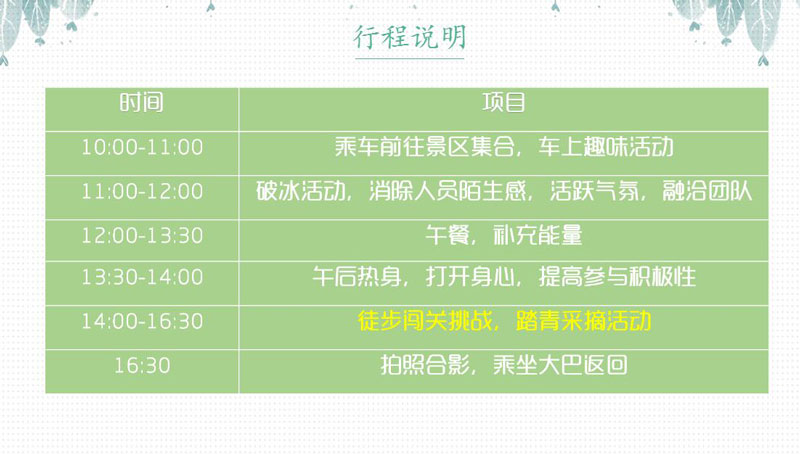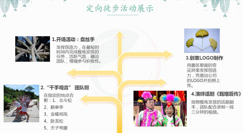 1、團建通項目經(jīng)理將竭力解決您在培訓前、培訓中遇到的問題,保證您的快樂培訓;
